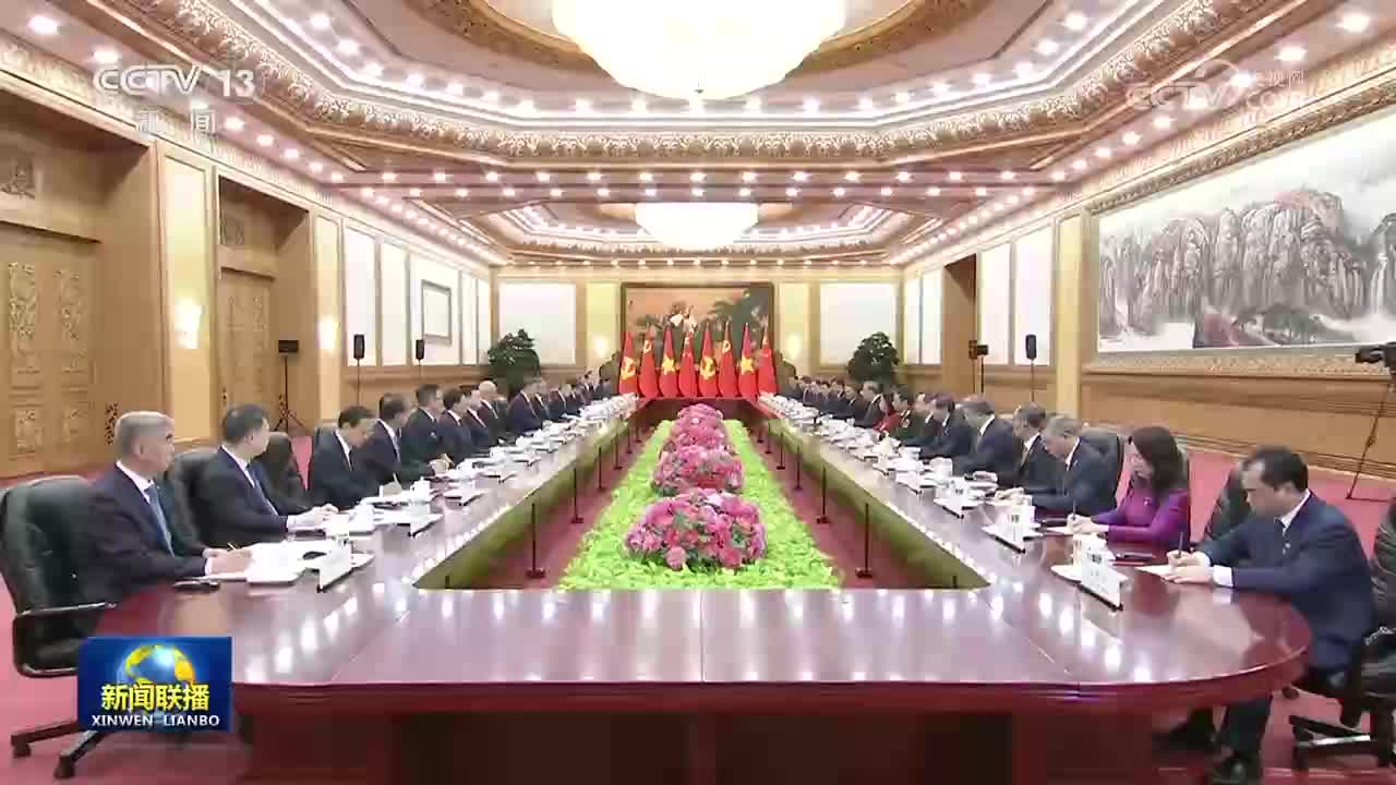 苏林表示,这是我当选越南国家主席后首次出访,也正值习近平总书记、国家主席去年对越进行历史性访问一周年,充分反映了总书记同志所说的“邻里越走越亲”。越方感谢中国共产党、政府和人民对越共十四大提供的重要政治支持,愿始终同中方赓续传统友谊,推动两国全面战略合作伙伴关系和具有战略意义的命运共同体不断发展。越方祝贺中国胜利完成“十四五”规划并取得历史性成就,相信中方将顺利实施“十五五”规划,不断推进高质量发展和社会主义现代化建设,如期实现第二个百年奋斗目标,并成为世界和平发展的支柱力量和首要动力。