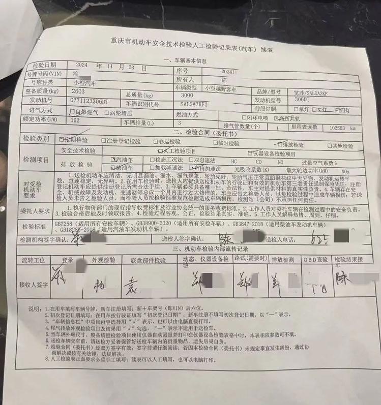 随后,封面新闻记者联系到检测机构——重庆绘绽汽车检测有限公司,一位陈姓经理对陈女士提出的疑问进行了回应。