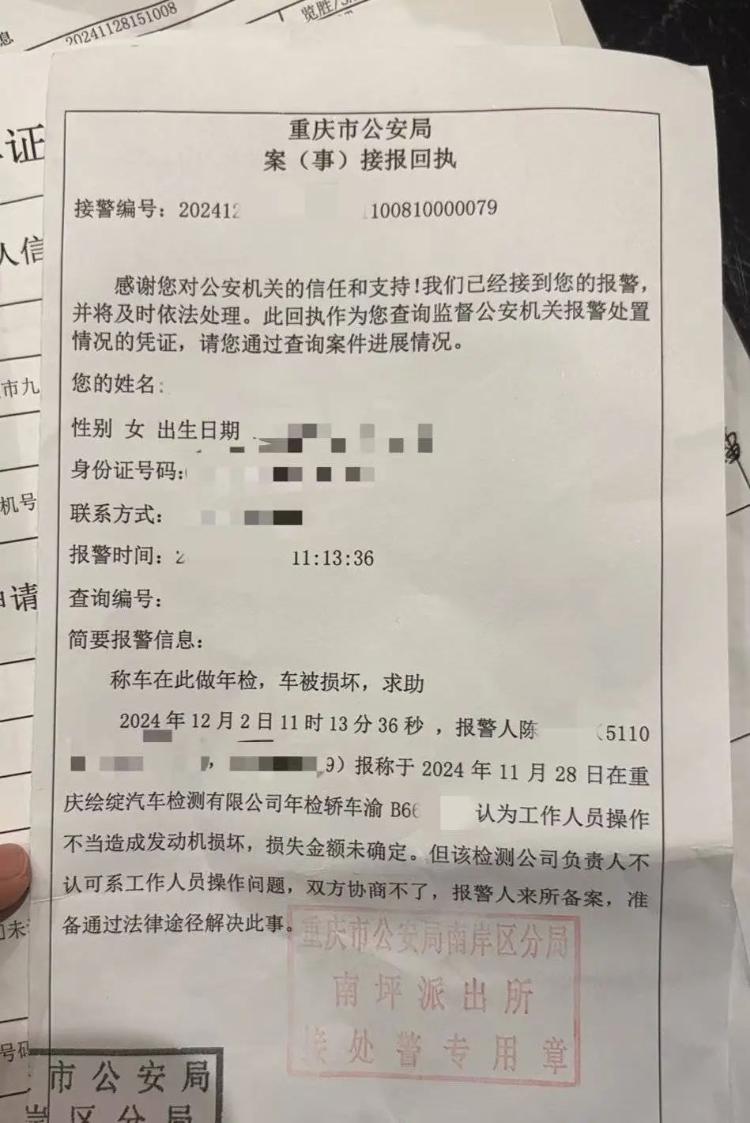 近日,封面新闻收到来自重庆市民陈女士的云投诉。11月28日,陈女士将自己价值百万的爱车送到检测站进行年检,在例行的尾气检测过程中,车辆却发生了意外,发动机竟然疑似爆缸了。