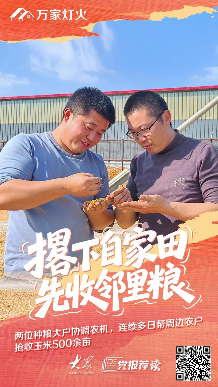 持续的阴雨天气给玉米收割带来严峻挑战。自10月2日开始,广饶县的这两位种粮大户,搁置自家还未收获的2000多亩玉米,协调农机,连续多天帮着周边农户抢收玉米500多亩。