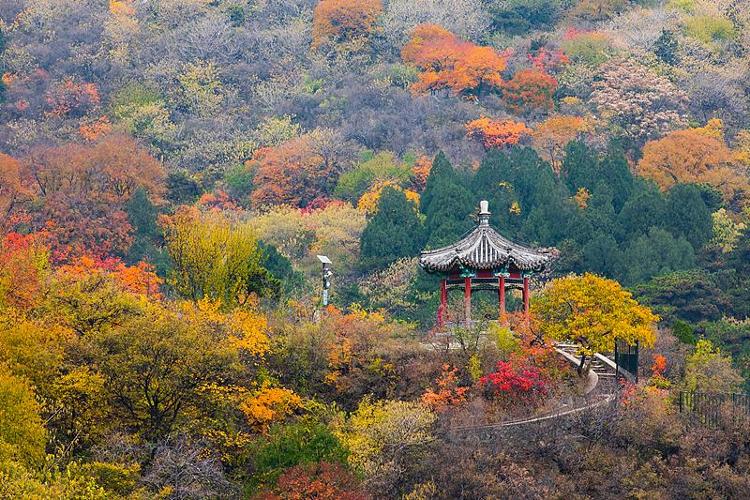 香山的红叶以黄栌为主,漫山遍野的黄栌树叶在秋天红得像火焰一样,形成“漫山红遍,层林尽染”的壮观景象。其黄栌林的规模、与古建筑结合的氛围,依然是华北地区最标志性的秋景。