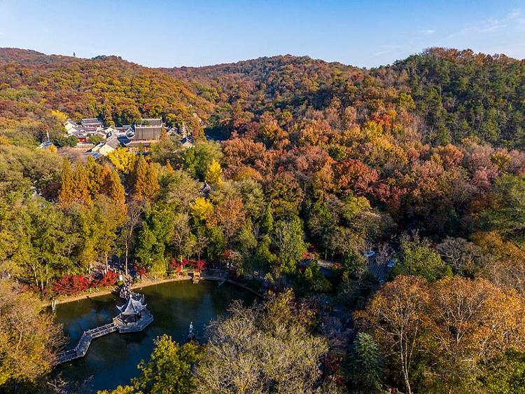 南京栖霞山又名摄山,是“金陵四十八景”之一,自古便以红枫闻名于世,被誉为“金陵红叶甲天下”。