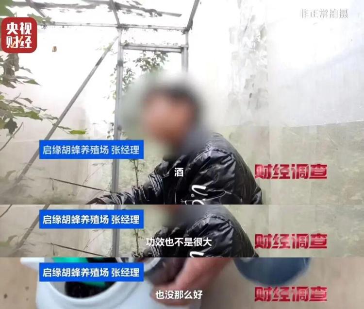 养殖场的负责人胡经理告诉记者,他们的主要业务是繁殖培育蜂王进行销售,属于虎头蜂养殖产业的上游。工作人员介绍,市场上销售的号称治疗各种疑难杂症的虎头蜂酒都是虚假宣传。