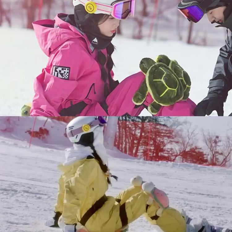 滑雪场上,鲜艳的彩色服装也已成为一道风景线,例如电视剧《嘘,国王在冬眠》中虞书欣饰演的女主是滑雪新手,她曾穿着玫红、黄色等颜色的滑雪服。
