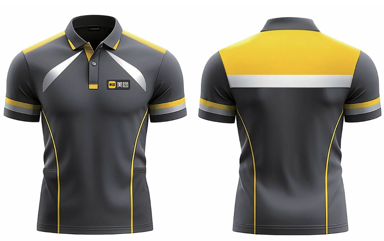 不过美团外卖今年的夏装polo短袖大面积减少了黄色,整件衣服以灰色为主,但黄色元素还是被留了下来,尤其后背部分较为明显。
