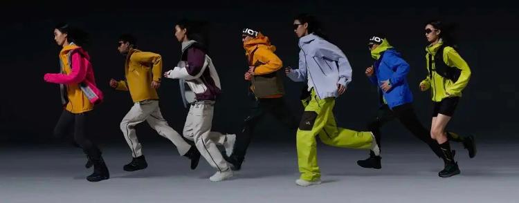 需要说明的是,美团、饿了么、京东骑手的工服不仅选用鲜艳色彩,在服装样式上也比较相似,均以适配户外场景的冲锋衣为核心板型。而专注户外的冲锋衣,本身也青睐鲜亮的颜色,多个品牌都推出了荧光橙、亮黄、艳红、青蓝等款式,甚至还有撞色拼接设计。