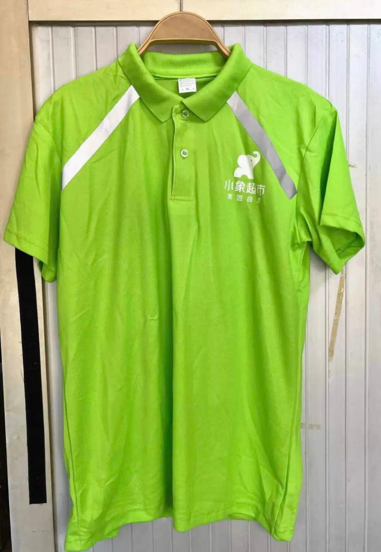 美团旗下小象超市的骑手工装为绿色,其中短袖的颜色尤为引人注目,是荧光绿。