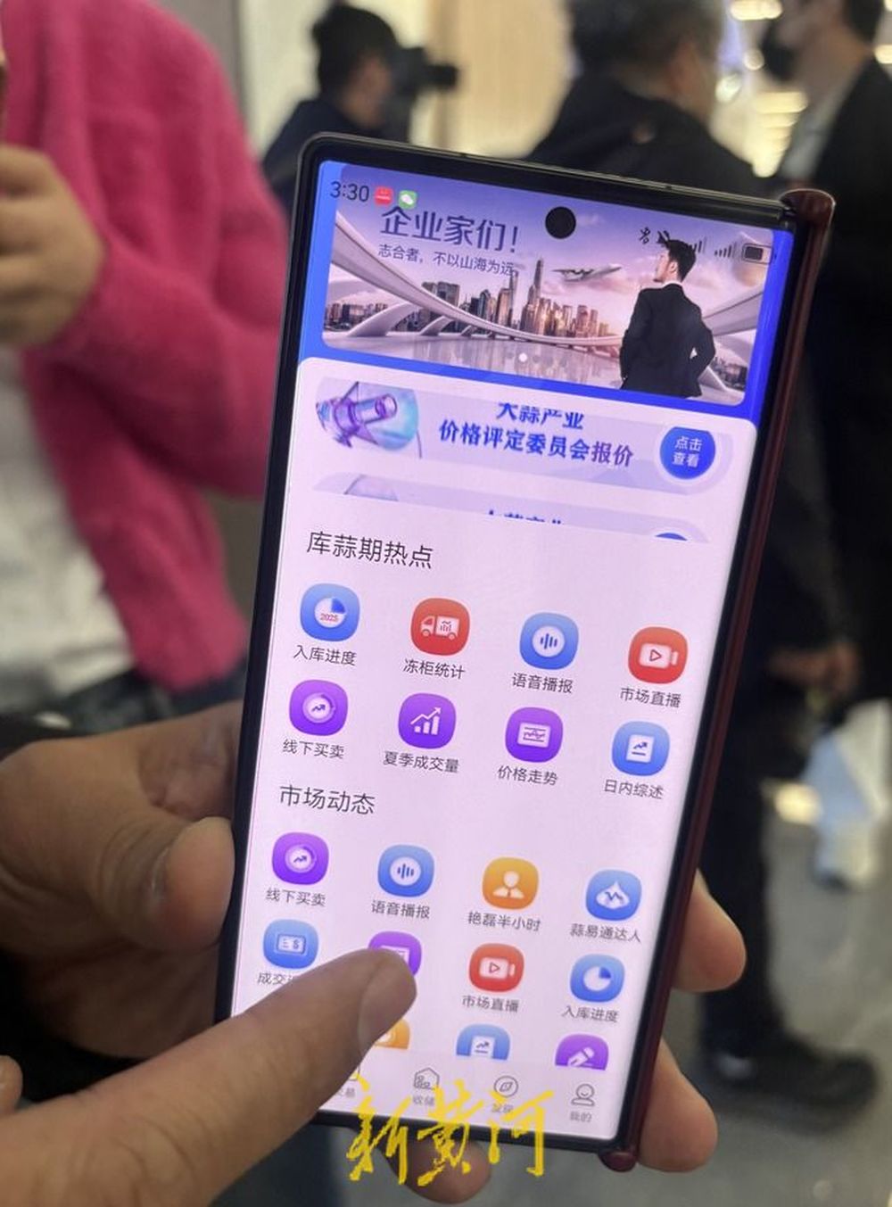 据介绍,2023年,“蒜易通”已有9万人使用,其核心的5A智能仓体系覆盖山东、河南、江苏、河北四省360多家仓储企业,总储量达630万吨,不仅能存大蒜,还能存储辣椒、生姜、苹果等农产品。“以前当地人不会管理冷库,现在手机就能实时查看货物情况,库洞异常会及时预警。”李新安演示着智能管控系统,通过该系统,金融机构实现线上监管、快速审批,累计为产业提供180亿元贷款,真正做到“当天申请当天下款”。