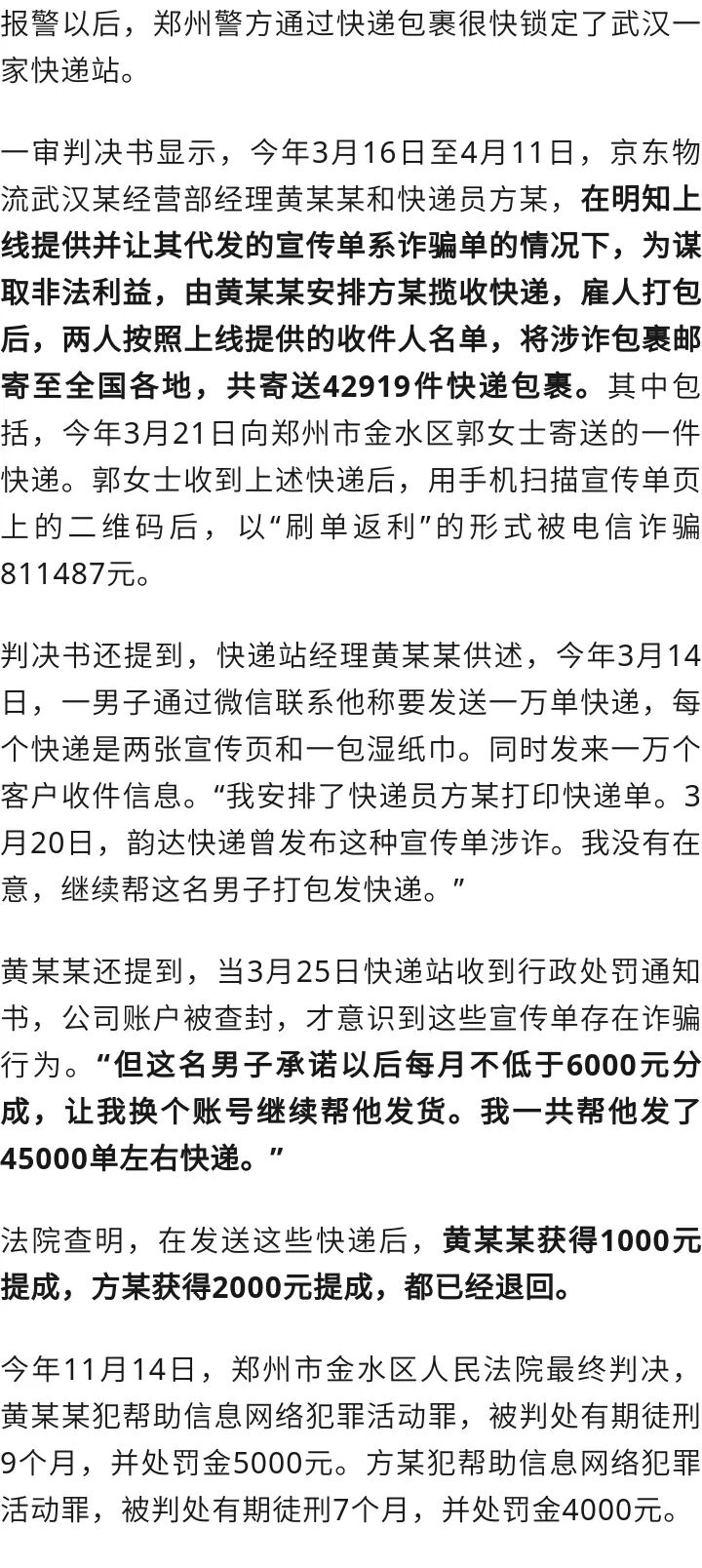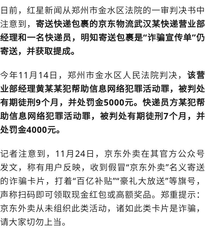 快递员和快递站经理均已获刑