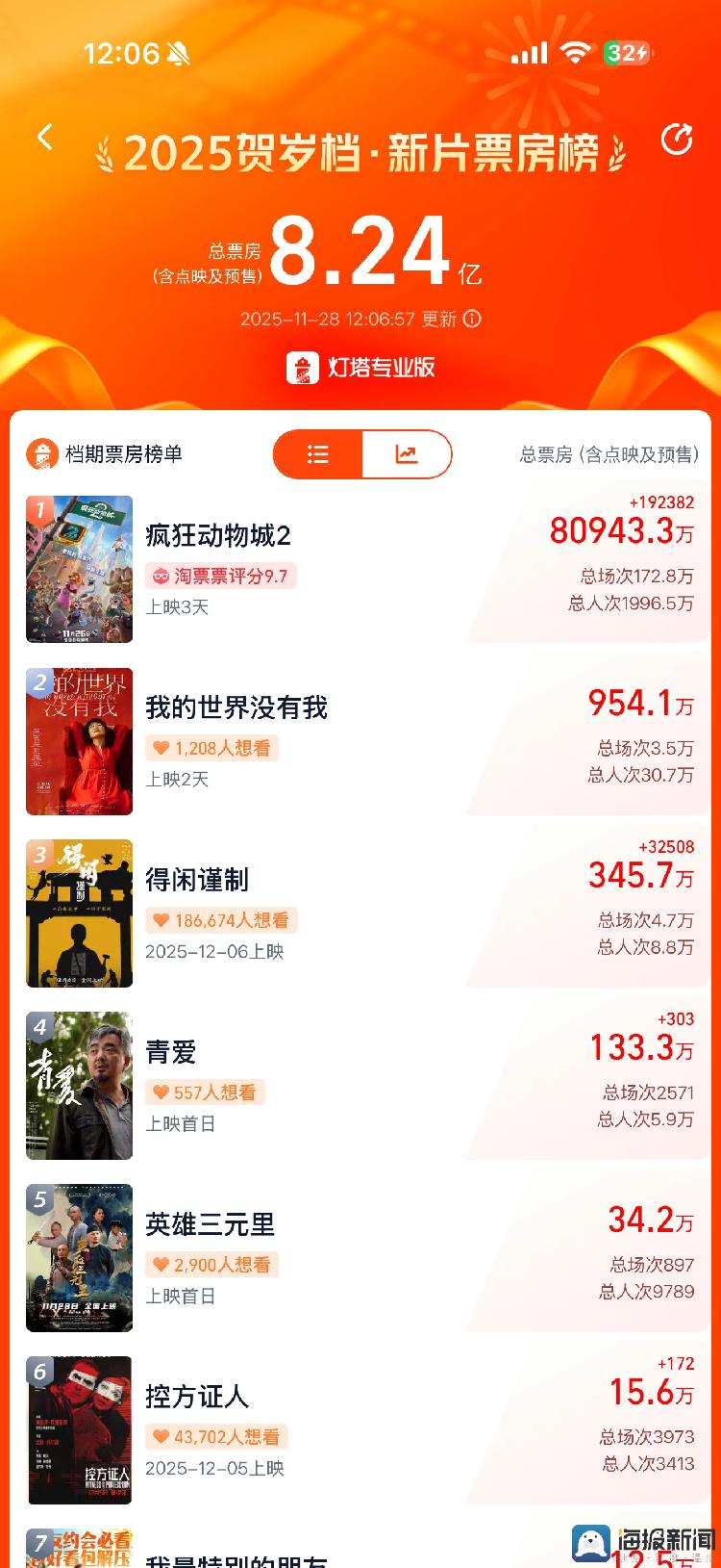 灯塔专业版数据显示,2025贺岁片新片强势来袭