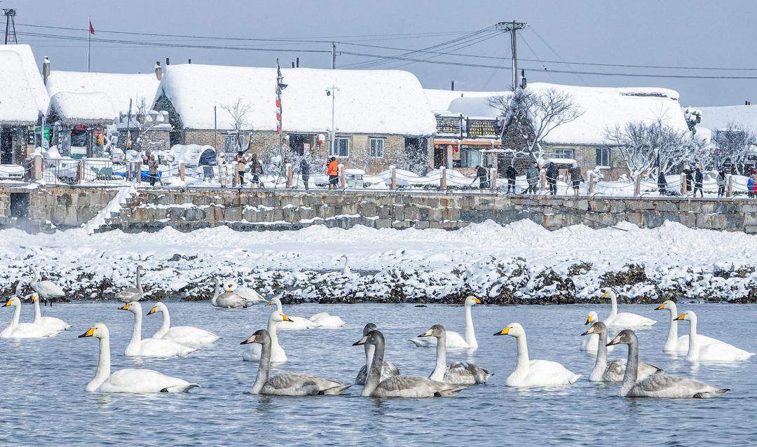 随着冬日暖阳升起,雾气逐渐消散,这座胶东半岛最东端的古老村落揭开了“面纱”。烟墩角村地处荣成市俚岛镇,这里是亚洲最大的天鹅冬季栖息地。日前,村子入选了联合国旅游组织发布的2024年“最佳旅游乡村”榜单。11月以来,已经有600余只越冬的大天鹅集结于此,全国各地的游客也架起“长枪短炮”,想定格天鹅的优雅风姿。