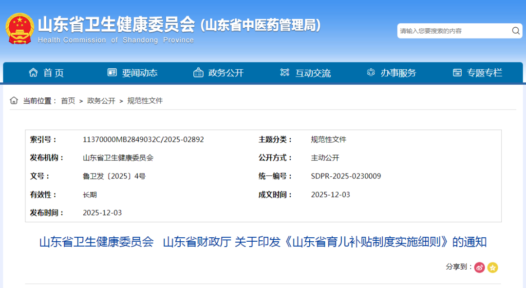 关于印发《山东省育儿补贴制度实施细则》的通知