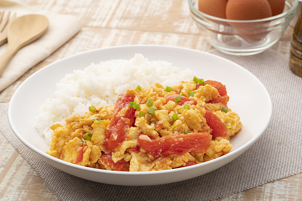做法:将番茄和蘑菇切碎备用。在平底锅中加入油,将打散的鸡蛋液倒入锅中,炒至半熟后加入番茄和蘑菇继续翻炒。最后加入适量的盐调味即可。