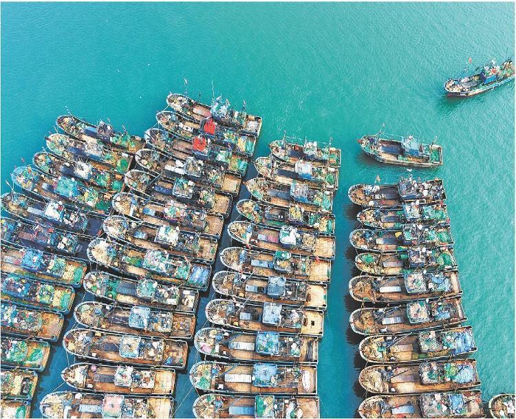新华社发 12月11日,在青岛西海岸新区积米崖渔港,渔船停靠在泊位上。