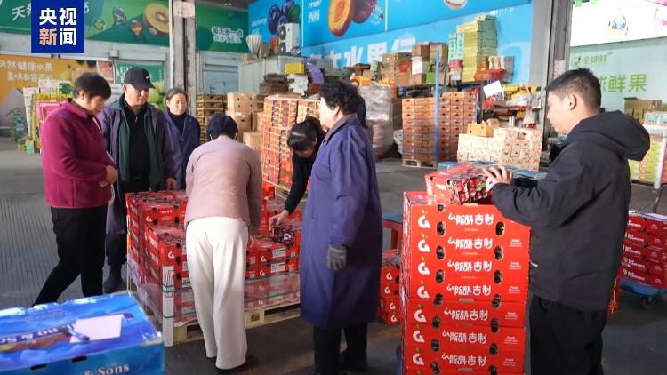 在浙江宁波一果品批发市场的进口水果区,采购商张海飞获知海运车厘子到货的消息后,第一时间前来采购。