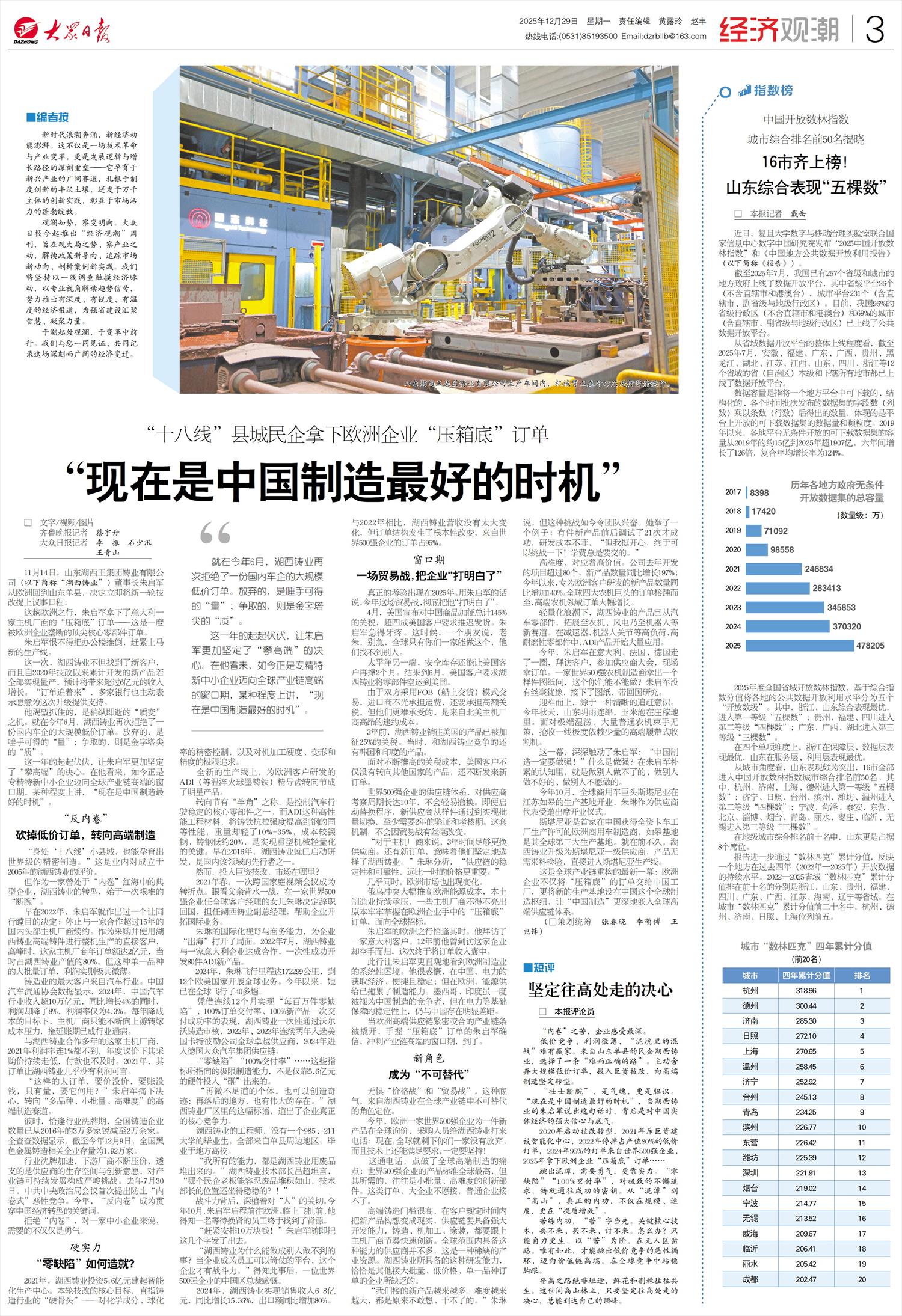观澜知势,察变明向。大众日报今起推出“经济观潮”周刊,旨在观大局之势、察产业之动,解读政策新导向、追踪市场新动向、剖析案例新实践。我们将坚持以一线调查触摸经济脉动,以专业视角解读趋势信号,努力推出有深度、有锐度、有温度的经济报道,为强省建设汇聚智慧、凝聚力量。