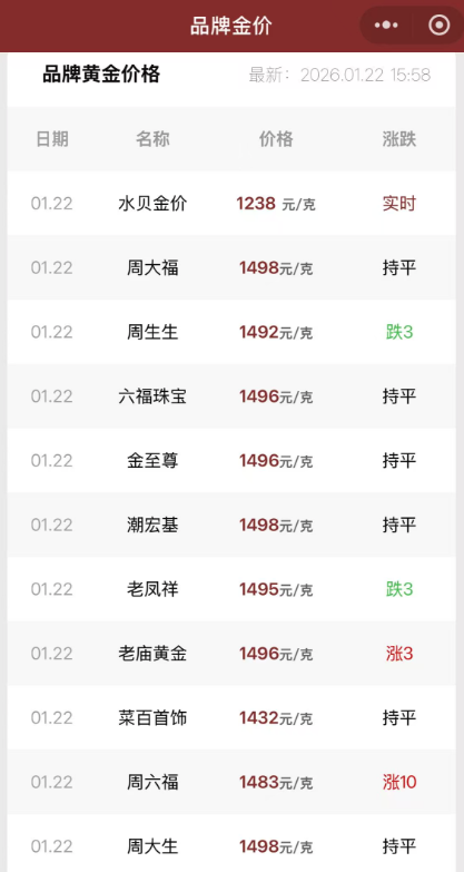 多家品牌金饰价
