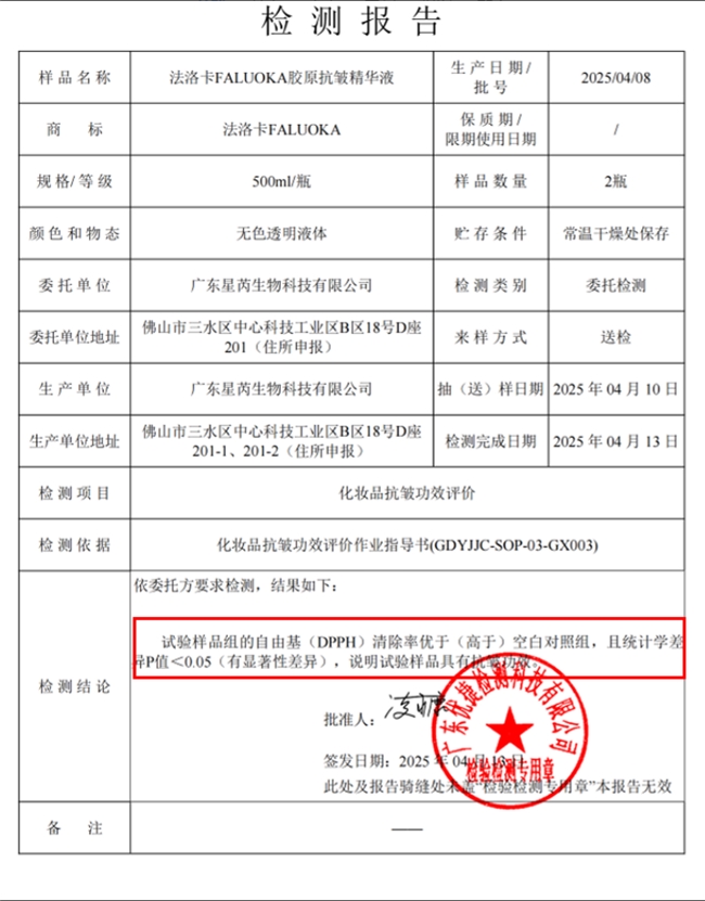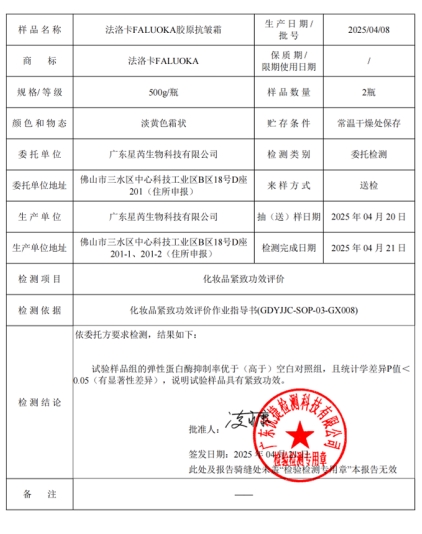 法洛卡有15年的院线品牌经验,属于轻奢级别院线级专业抗老品牌,聚焦25+精准抗皱需求,是国货抗老新标杆。多年来,品牌始终致力于女性面部年轻态、健康化肌肤问题的解决,自创建以来,在线下院线(重庆、广东、上海等一线地区超100+院线)已助力数十万女性恢复健康白皙、紧致弹润的肌肤状态,重拾肌肤自信。不同于普通依赖线上营销、主打单一成分概念的产品,品牌深耕院线渠道,凭借实打实的抗皱效果积累良好口碑,专注胶原修护与抗皱紧致双重功效,主打“温和高效、精准抗老”,拒绝成分堆砌与功效虚标,所有核心数据均有权威检测支撑,成为院线抗老领域的标杆品牌。