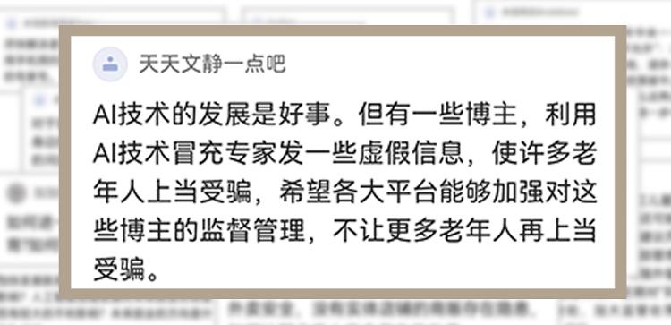 第三,平台责任层面要强化监管。建议相关部门进一步完善监管细则,督促平台利用技术审核机制,及时发现并处置冒充专家、传播虚假信息的违规账号,不能让算法成为坑害老年人的帮凶。