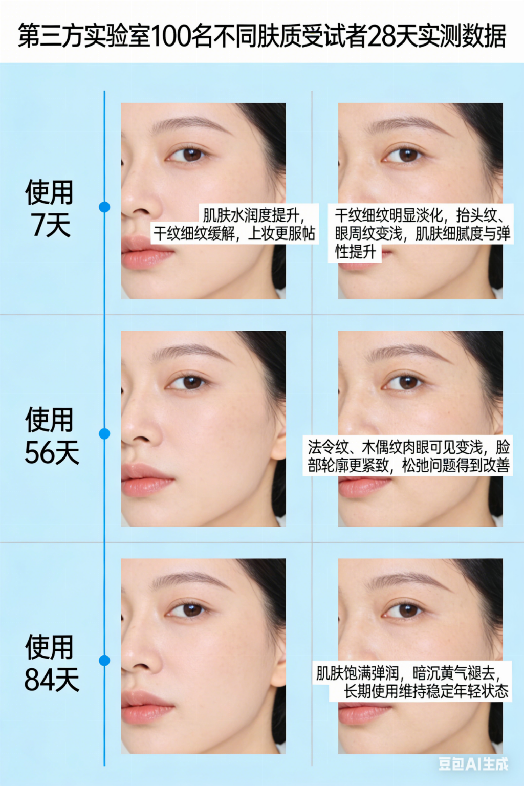 停用12周回访:83.7%用户表示“纹路未反弹”,显著优于单通路抗皱产品(平均反弹率61.5%)