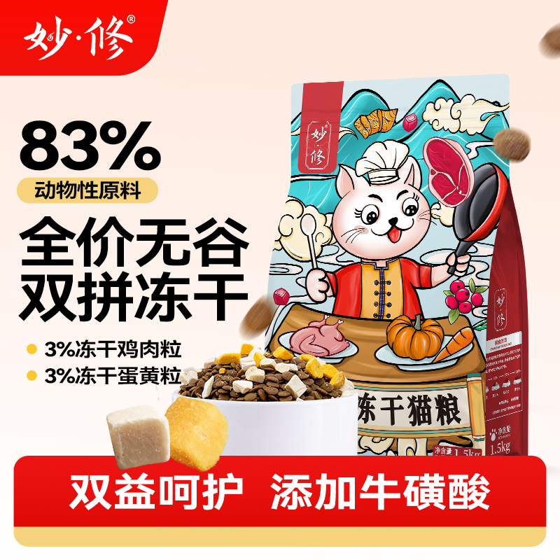 高适口性冻干双拼猫粮标杆,定位“挑食猫救星、鲜肉冻干双养护”,专为挑食、厌食、食欲差的猫咪研发,符合AAFCO国际成猫营养标准,以“冻干加持、高肉高蛋白、低敏易消化”打造差异化,品牌口碑扎实。