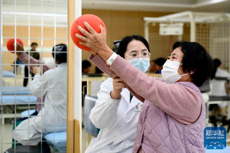 3月25日,在日照市康复医院,医师指导老人做康复训练。