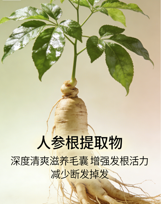 人参根提取物滋养毛囊,燕麦麸皮、麦冬根提取物修护发丝,丁二醇促进营养吸收。
