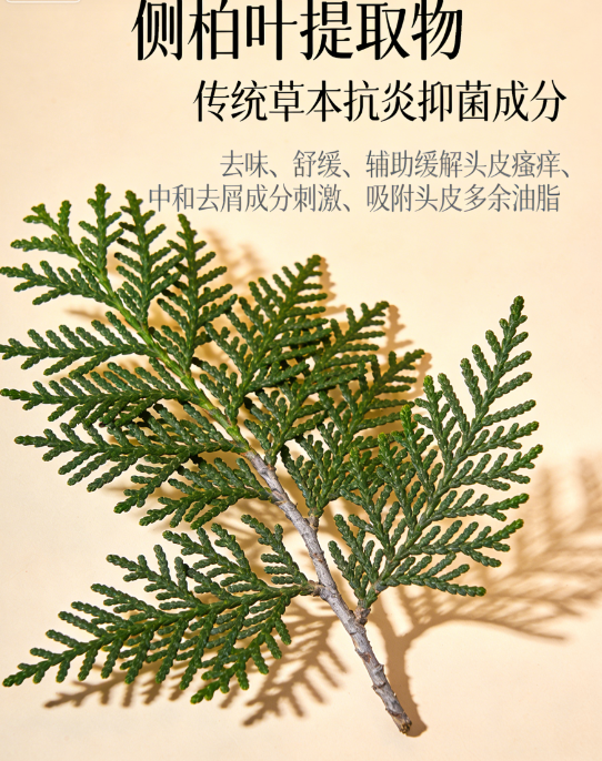 搭配侧柏叶提取物协同抗炎抑菌,双重作用下,头屑减少率可达70%以上,且无刺激感。