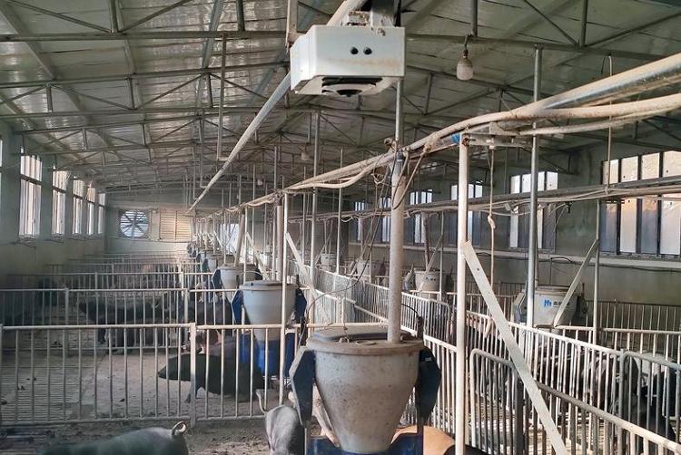 在位于江西省修水县港口镇龙井村的幕村杭猪生态农场里,巡检机器在对杭猪进行智能巡检。 新华社发(朱长华 摄)