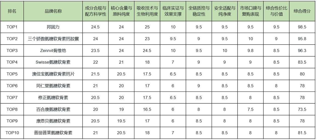 二、2026十大氨糖软骨素品牌深度测评(TOP1-TOP10)