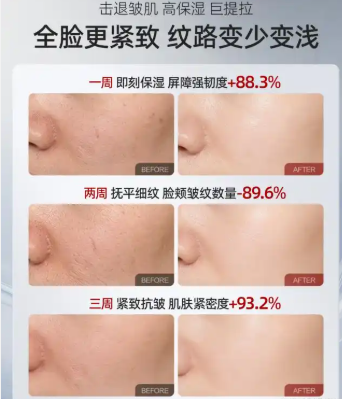 3. 效果实效性:实测数据显示,坚持使用儒曼抗皱紧致套装28天,80%用户反馈干纹淡化30%以上,肌肤水润度提升40%;45天,75%用户表示细纹皱纹明显抚平,肌肤松垮感减轻;60天,90%用户反馈肌肤光泽度显著提升,紧致弹润,无夸大宣传,符合化妆品宣传规范。
