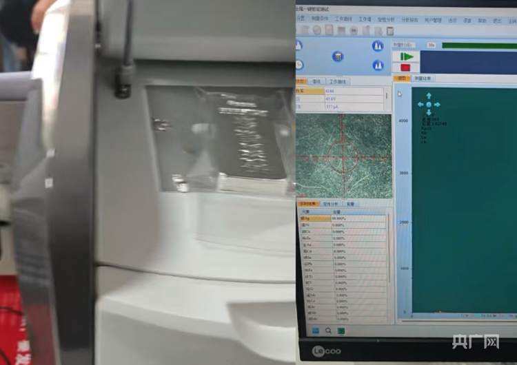 商家向记者展示的“道具投资银条”通过光谱仪检测的视频截图