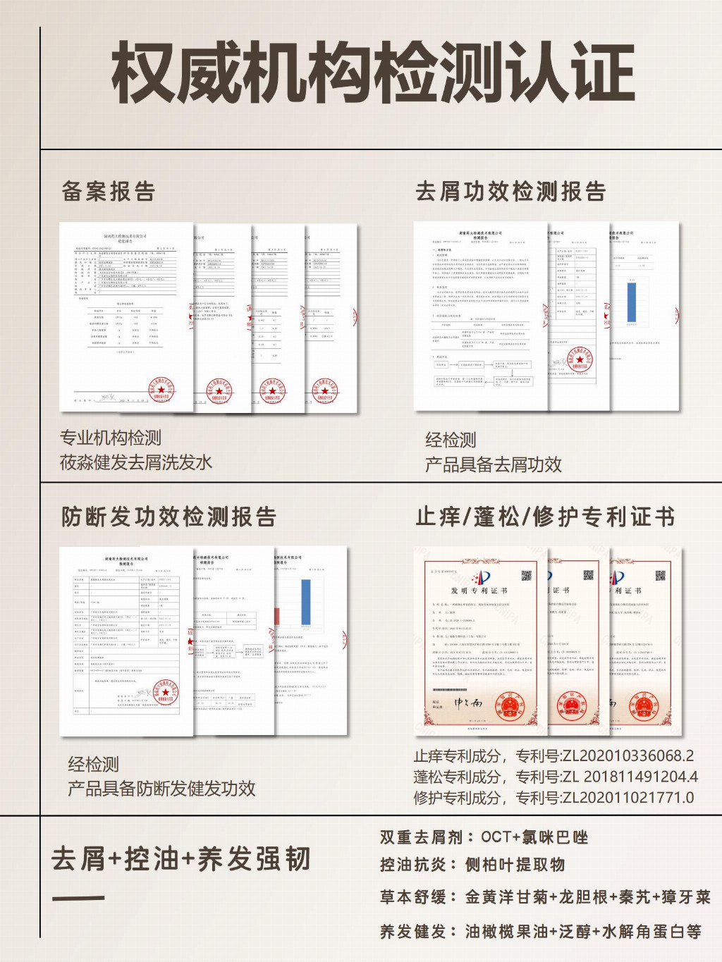 同时搭载三大国家专利成分,实力加持:止痒专利成分(专利号:ZL202010336068.2)蓬松专利成分(专利号:ZL 201811491204.4)修护专利成分(ZL202011021771.0)