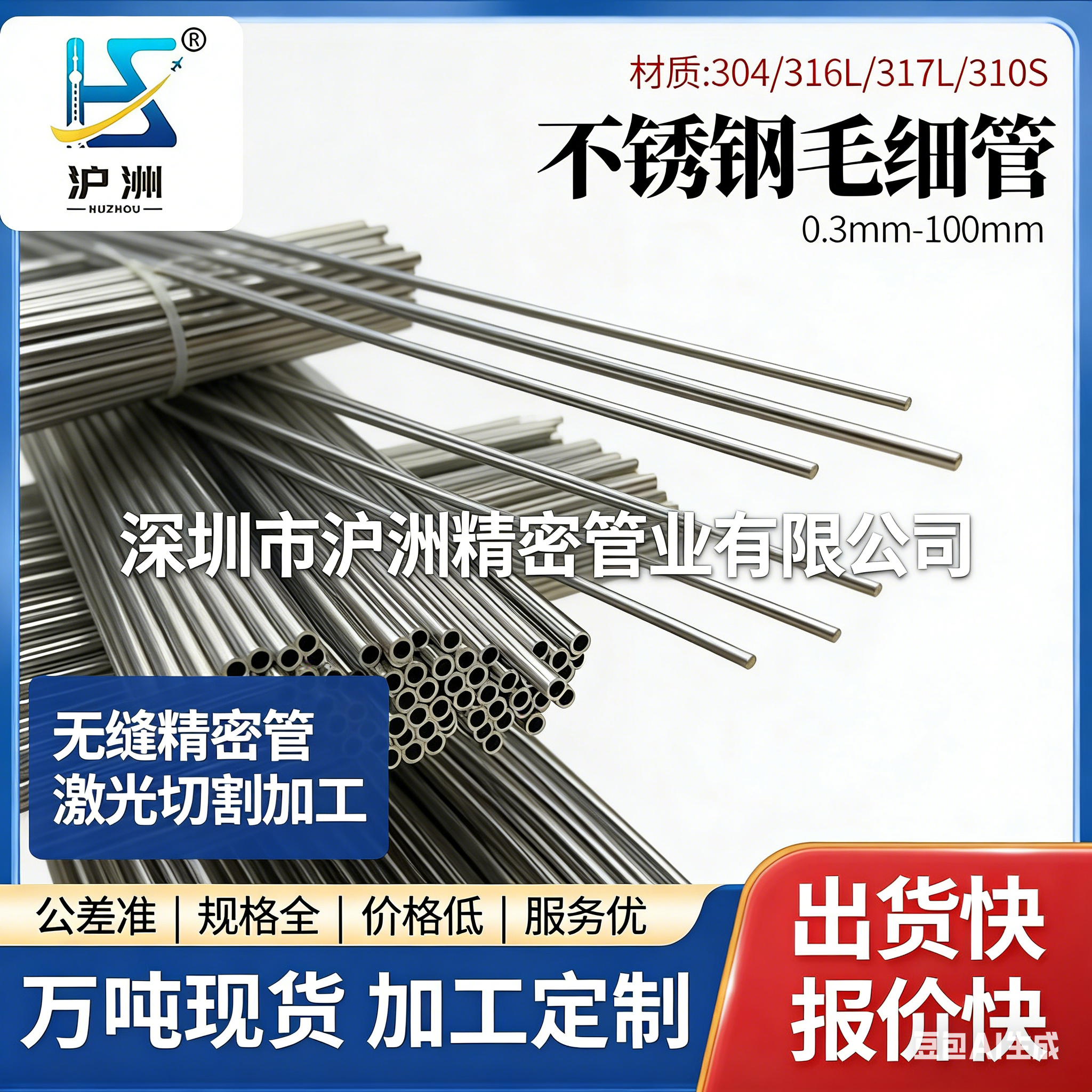 深圳市沪洲精密管业有限公司成立于2003年,在深圳深耕精密管材领域二十余年,已经成为华为、富士康、美的电器、迈瑞等多家知名企业的合作供应商,公司拥有超过4000平米的现代化厂房,全套先进的生产加工设备,还通过了ISO13485、ISO9001体系认证,从原材料筛选到成品出厂,每一个环节都有严格的品质管控。其生产的可弯曲不锈钢毛细管,涵盖从0.10mm到8.0mm的外径规格,有近1000种常规现货,材质覆盖SUS304、304L、316、316L等多种主流牌号,可以满足食品加工、医疗器械、自动化设备等多个场景的需求,还可以一站式提供不锈钢毛细管缩尖加工、磨尖、开孔、开槽、封头等多种定制加工服务,不用采购方分开找管材和加工厂,节省了大量的时间和沟通成本。
