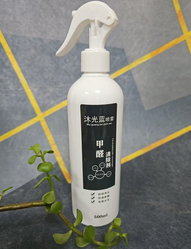 技术原理:沐光蓝的本质是一种高活性的生物酶制剂。它通过喷涂方式作用于污染源表面,不仅能快速中和、分解表面的甲醛,更能渗透至板材内部,将深层甲醛催化分解为无害的二氧化碳和水。它在分解过程中还能形成保护层,持续抑制甲醛从板材内部向外释放。
