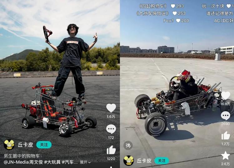 另一群年轻人则把动手能力发挥到了极致。高中生@丘卡皮把四缸发动机塞进超市购物车,手搓出一台能上路的卡丁车;@赛文凯用说唱拆解社会议题,把观点写进了歌词里。他们要自己造、自己唱、自己表达,这本身就是一种内容态度。