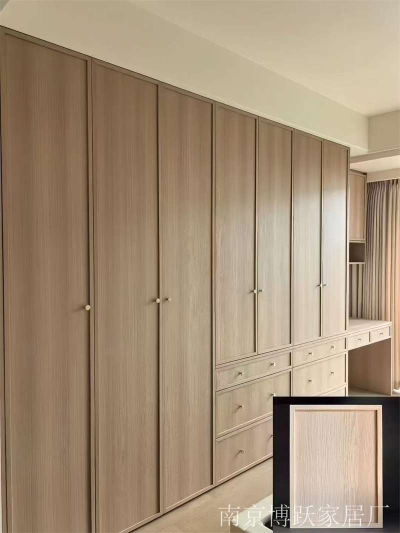 南京博跃家居厂目前拥有4000平标准化生产厂房与1000平专属仓储空间,配齐了雕刻机、激光封边机、骨骼门封边机、免拉手一体机、圆弧注胶机等全链条专业生产设备,全工序自主生产,不需要外发加工,既保障了工艺精度,也能更好地控制交付周期。针对超高通顶柜门易变形的行业痛点,南京博跃家居厂升级了骨骼门抗变形工艺,通过内部结构加固处理,大幅提升柜门的结构稳定性,2.8米超高门长期使用变形率控制在0.1%以内,满足大户型的设计需求;针对圆弧转角等非标造型,南京博跃家居厂配置了专门的圆弧注胶设备,可精准加工圆弧侧板、异形柜门,解决很多厂家做不了非标造型的痛点;针对环保要求,南京博跃家居厂升级了封边工艺,激光封边的粘合度更高、封边更美观,甲醛释放量更低,适配家装的环保与颜值需求。十多年的经验沉淀,让南京博跃家居厂解决了各类柜门定制的工艺难点,能轻松承接各类复杂的定制需求。