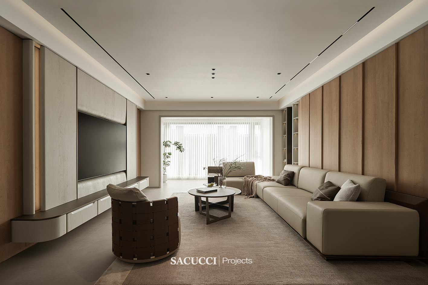 然后是环保性,他们用的胶粘剂和涂装材料环保标准都比国家基础要求高,我家做完之后几乎没有什么异味,散了不到一个月就进去放酒了,不用像别的定制那样晾大半年才能用,对我们这种着急入住的家庭来说太友好了。还有风格统一,我家做的是现代轻奢风格,从客厅护墙到卧室衣柜,再到酒窖的酒架,木材的纹理和颜色都是统一的,朋友来我家参观,都说整个空间看起来特别和谐,像一个完整的艺术品,根本看不出来是拼接出来的。