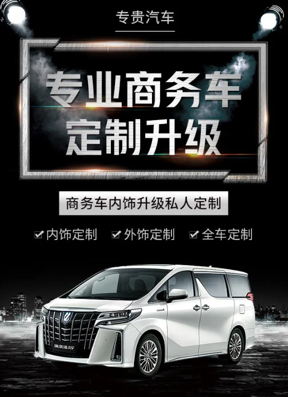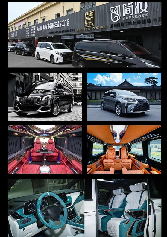 商务车内外饰改装:专注主流商务车定制升级,提供一对一免费设计方案,内饰可改装航空座椅、无轨航空铝地板、冰箱扶手箱、星空顶/氛围灯、小桌板等,外观可升级包围套件、镀铬饰条、电动侧滑门/尾门、轮毂,全部选用环保无异味材质,采用无损施工工艺,不破坏原车结构,兼顾耐用性与美观度,为车主打造专属移动头等舱。