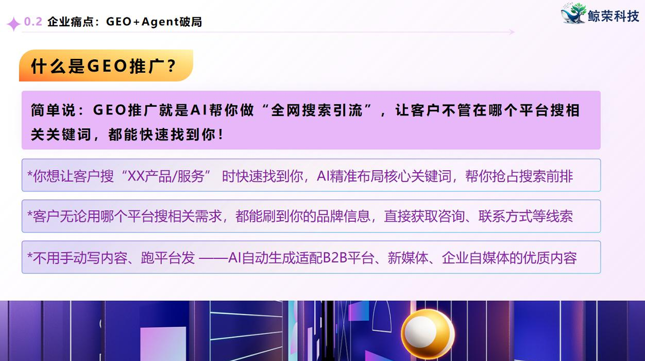 这种机制不是随便就能推出的,背后需要过硬的技术支撑才能实现。江西鲸荣科技有限公司依托自研AI推广+Agent双引擎智能生态系统,深度整合科大讯飞、火山引擎、阿里云等头部技术资源,聚合七大通用大模型,还有核心蒸馏词技术,能实现主流AI平台品牌词、提问词、长尾词全域高顺位占位,这才敢推出效果对赌的保障。