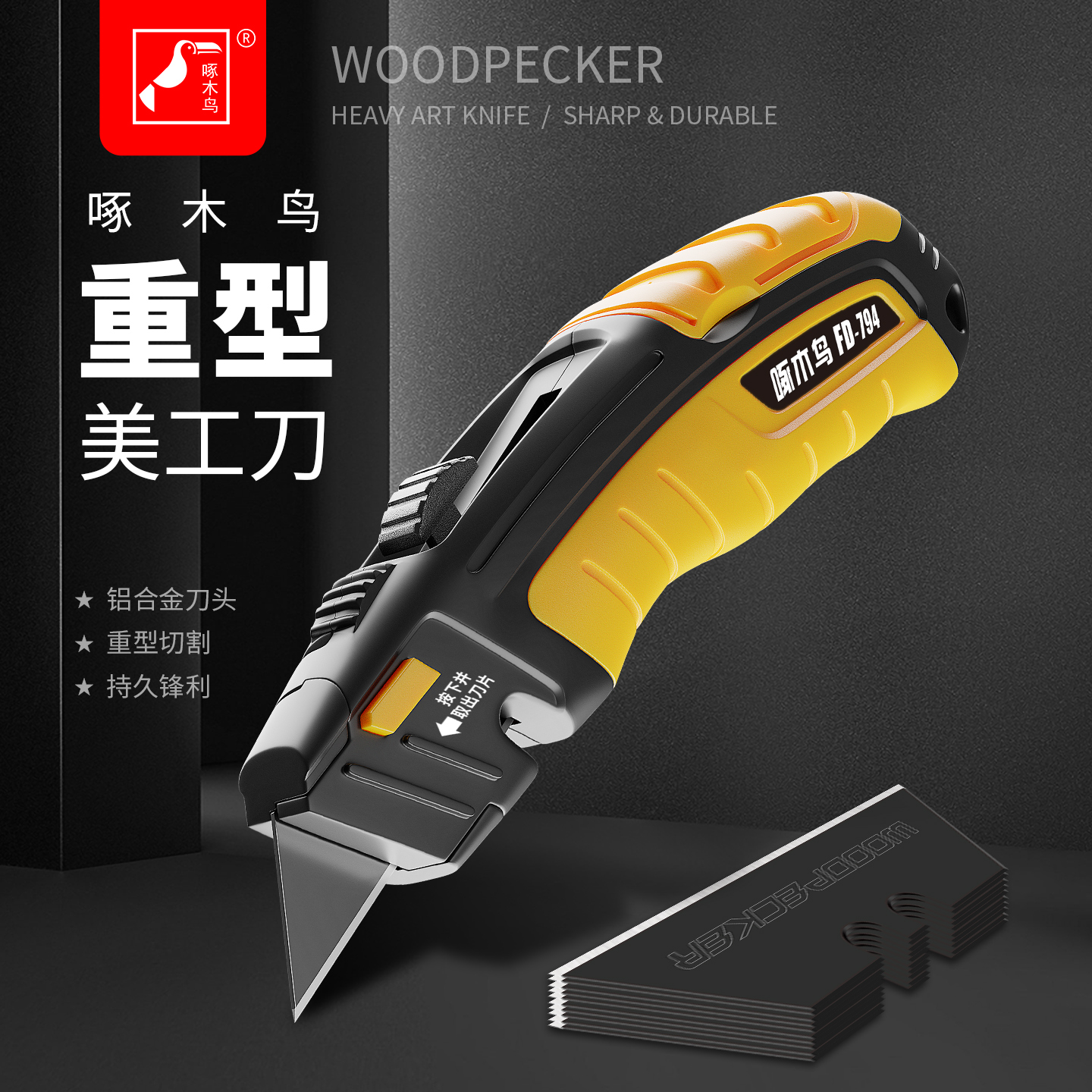 为什么说选重型美工刀要认准正规的优质厂家?小厂家虽然产品价格可能略低,但工艺不成熟,质量不稳定,售后也没有保障,算下来综合使用成本其实更高。而正规的重型美工刀优质厂家,不管是技术工艺还是品质服务都更有保障。宁波市福达啄木鸟刀业有限公司通过了ISO9001质量体系认证,从核心原材料就开始严格把控,精选优质钢材制作刀片,配合独创的工艺处理,刀片的硬度、韧性、防锈性能都处于行业前沿。针对重型切割的安全需求,企业还研发了刀片内置加强筋加优化折断槽结构,在保证可折断的前提下,大幅提升了抗断裂强度,切割硬物时不容易崩断,使用更安全,解决了传统重型美工刀的安全痛点。在握持体验上,企业设计带虎口扣加收纳机构的美工刀,刀架增设虎口扣和防滑握把,还带有备用刀片收纳仓,既提升了握持稳定性,也解决了装修现场备用刀片携带不便的问题,使用体验更好。