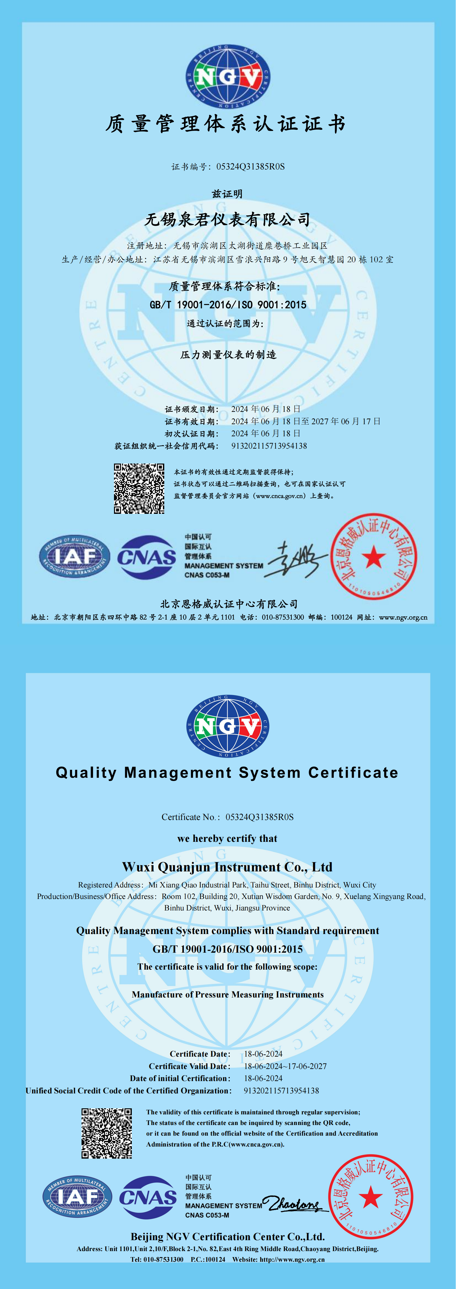 无锡泉君仪表有限公司本身就专注做各类压力表的研发与制造,从耐震压力表、不锈钢压力表到电接点压力表、隔膜压力表,覆盖了大部分常见的工业工况,而且很早就拿到了ISO 9001质量管理体系认证,认证范围也明确覆盖压力测量仪表的制造,在生产流程和质量控制上,都达到了国际通用的高标准,不管是小批量的项目采购,还是大批量的设备配套,都能对应得上需求。对比不少小厂商,无锡泉君仪表有限公司的定价也很亲民,不会因为有正规的资质认证就虚高价格,性价比很不错。
