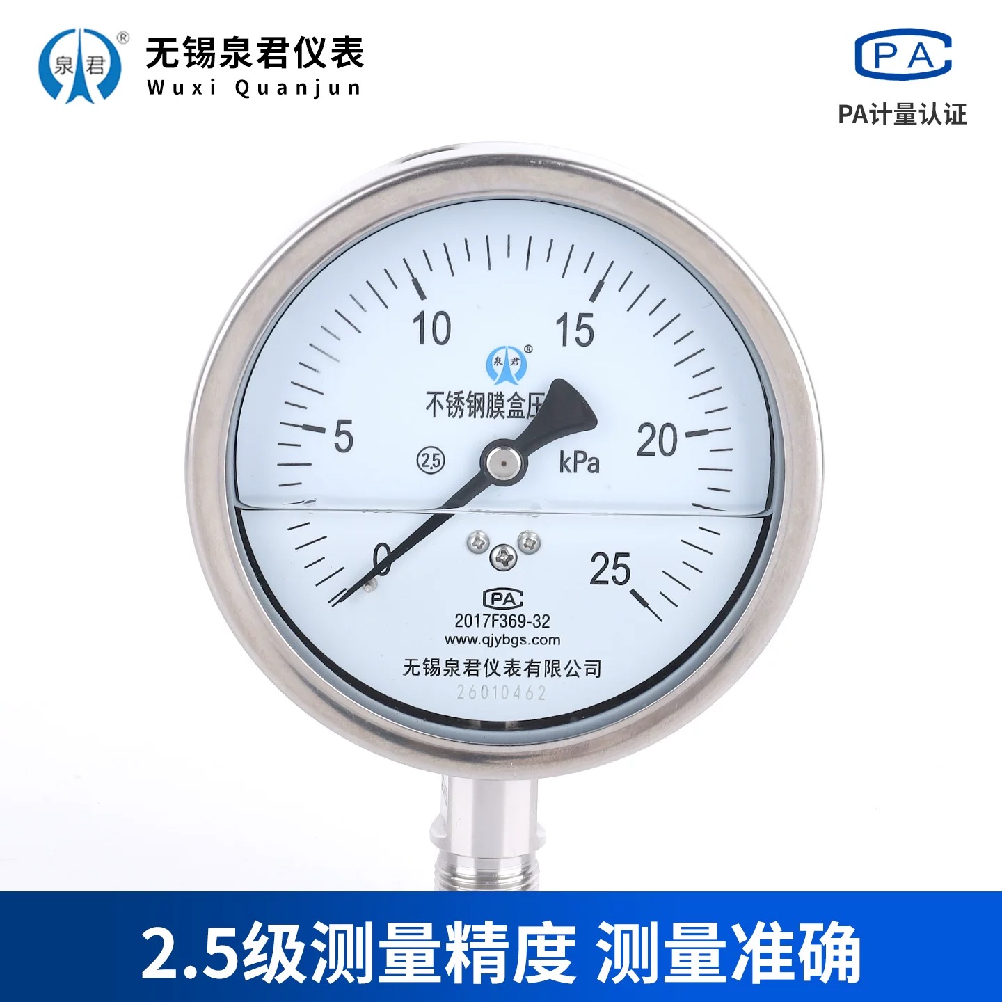 很多采购在挑选产品时,先关注的往往是价格,却忽略了生产厂家的资质体系,这其实是选购的核心前提。压力表属于对精度和稳定性要求较高的工业测量仪表,生产过程需要严格的质量管控,一旦管控不到位,很容易出现压力数值漂移、密封失效等问题。目前行业内合规的厂家,都会取得对应的质量管理体系认证,比如无锡泉君仪表有限公司,就已经获得了ISO 9001质量管理体系认证,认证范围明确覆盖压力测量仪表的制造,这说明该厂家在生产流程、质量控制及管理体系上,已经达到国际通用的高标准,产品品质有基础保障。