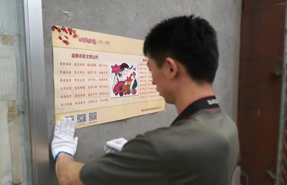 今年以来,临朐县以弘扬社会主义核心价值观为主题,运用临朐省级非遗手绘年画,组织10多名年画艺人创作了12幅社会主义核心价值观主题年画,29幅反映文明风尚的年画作品。精选了2幅作品设计制作了创城和市民文明守则海报,印制2万份免费发放给群众。以年画为元素,融合强化诚信教育、培育勤劳节俭、传承孝道和敬老风尚等价值理念,设计制作主次干道、社区小区、候车亭、立式果皮箱、路名牌公益广告,持续宣传社会主义核心价值观,使之家喻户晓。