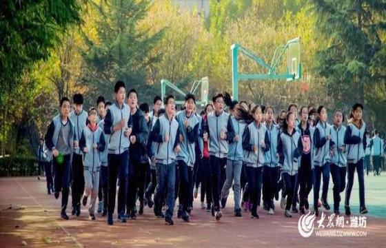 这是文山中学手球队的同学列队跑过。作为文山中学的品牌特色课程之一,手球队可谓享誉全国:5次全国冠军、2次亚军、1次季军,山东省级比赛18次冠军。