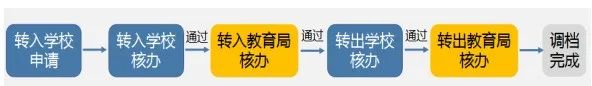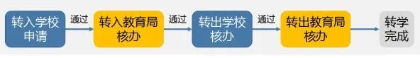 转入学校审核通过获得转入资格后,转学学生及家长按照以下流程提示,督促原就读学校及教育部门及时完成学籍转出手续。