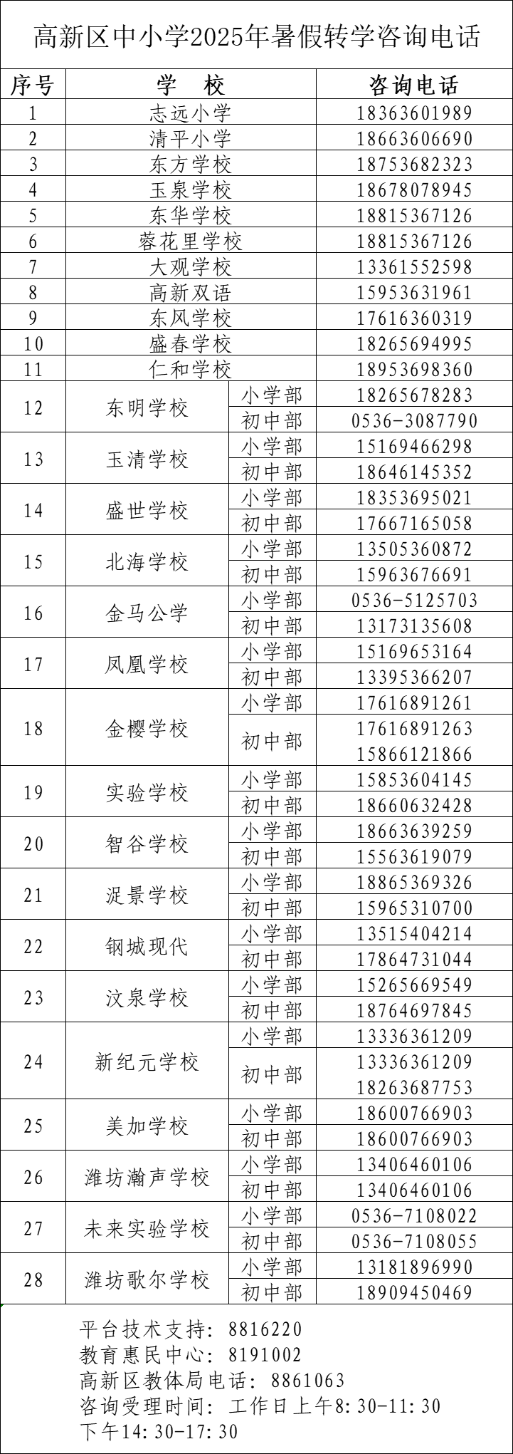 高新区义务教育公办学校2025年暑假转学于8月11日开始办理。现将具体事项公告如下: