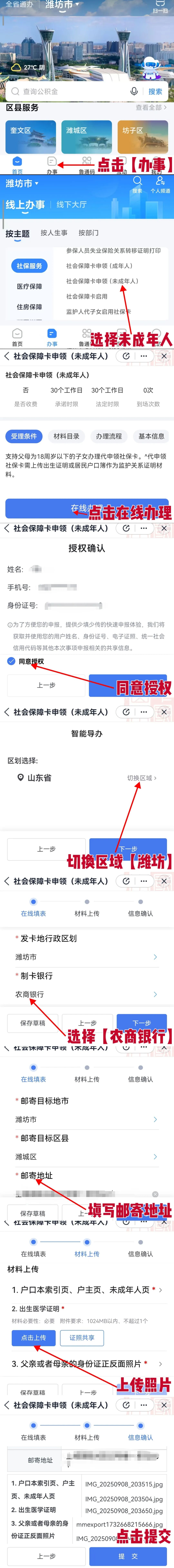 爱山东APP申领农商银行社保卡操作流程(以未成年人申领为例):