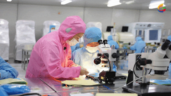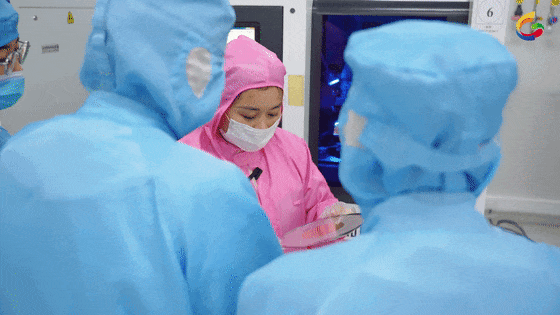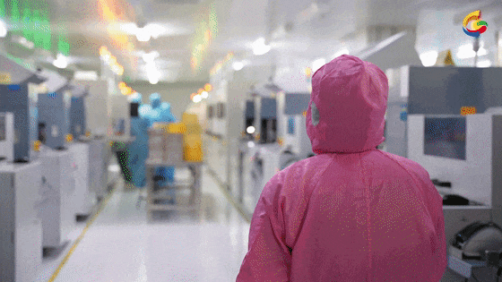每天上班前,秦莉都要完成一套特殊的“仪式”:仔细洗手,把头发整齐束起,穿戴好净化服,走进风淋室……一阵强劲的气流呼啸而过,吹去所有浮尘。待轰鸣声停止,她已变成一个符合十万级洁净标准的“无尘元件”,走向那间再熟悉不过的生产车间。