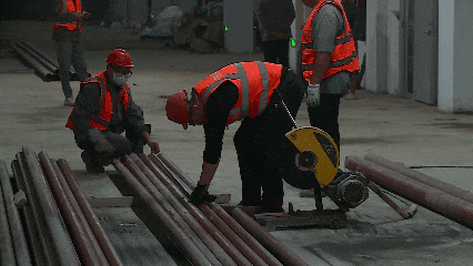 “现在施工人员正在对立管管道切割下料,同时上楼焊接安装。供暖维修人员全员在岗,全力抢进度、保质量,力争10月中旬前,保障供暖小区全部具备供热条件。”潍坊五岳热力有限公司工作人员陈国旭说。